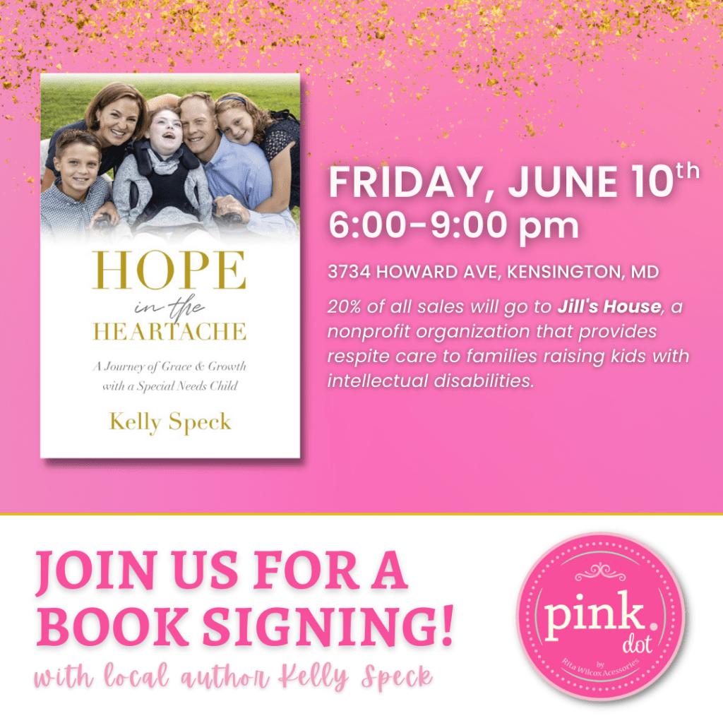 We decided on Friday, June 10th and Caroline graciously offered to donate 20% of all sales that night to Jill’s House, the not-for-profit organization that offers respite to families of kids with disabilities. We were SO touched by her gesture to support both Jill’s House and our book launch! A true honor.